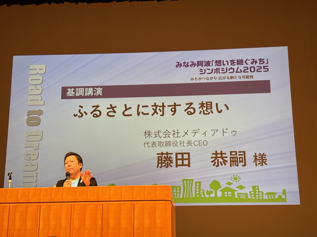 県南への高速道路早期開通を願う県内の関係者が一堂に集まり シンポジウムが開催されました メディアドゥの藤田CEOの徳島愛 那賀町愛が伝わる講演もありました